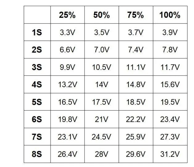 برای پک 3 سل (3S)، عدد N برابر 3 است؛ پس آستانهها اینطور میشوند: