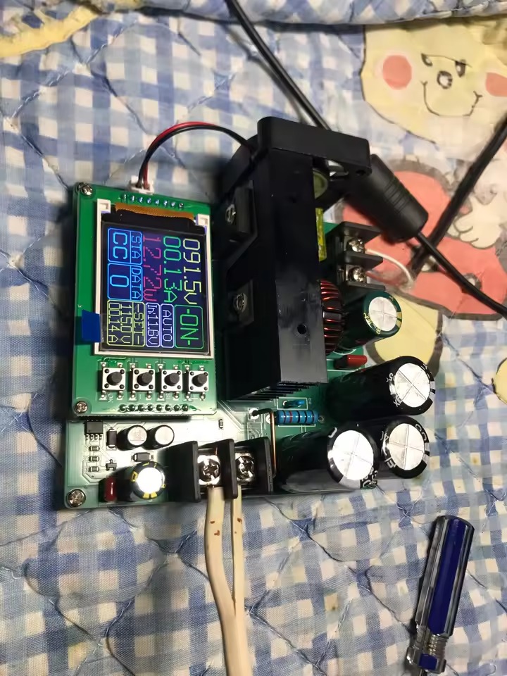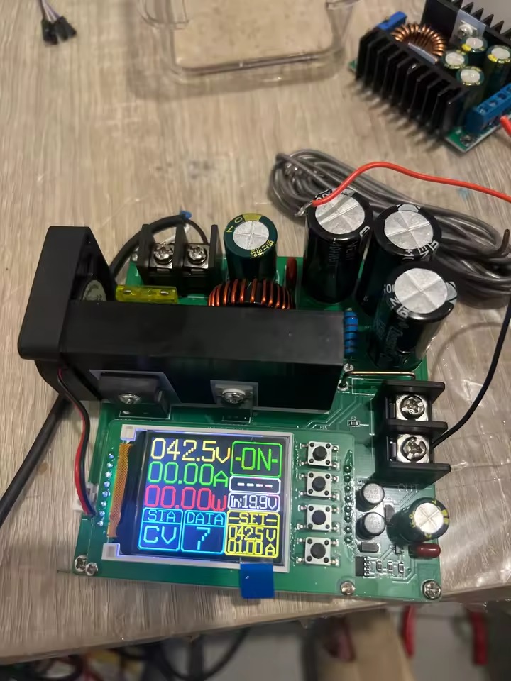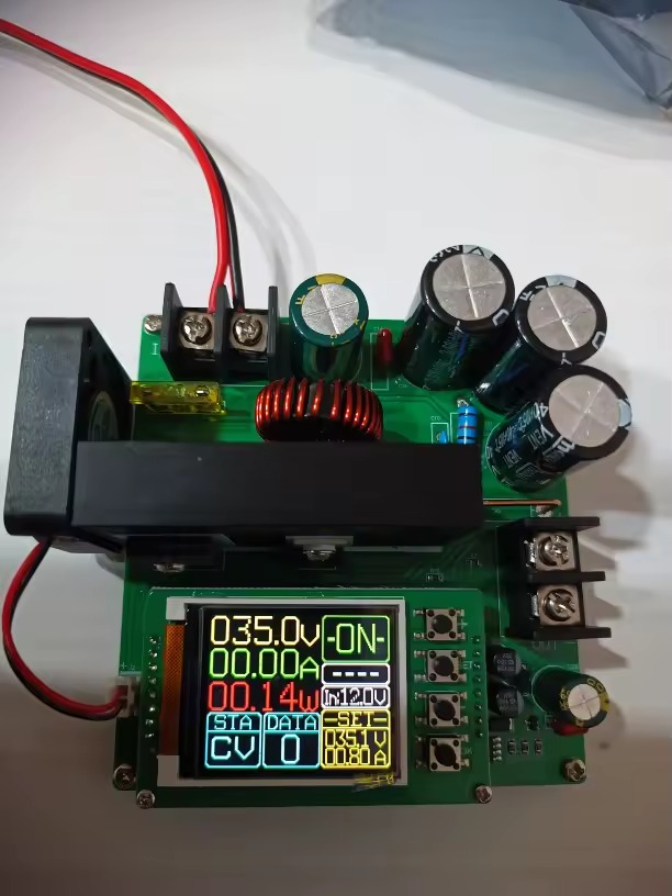 نکته مهم اینه که این ماژول فقط یک بوست ساده با پتانسیومتر نیست؛ بخش کنترلش دیجیتال و مبتنی بر میکروکنترلر طراحی شده، نمایشگر رنگی داره و هم ولتاژ، هم جریان، هم توان و حتی ظرفیت عبوری رو بهصورت عددی بهت نشون میده.