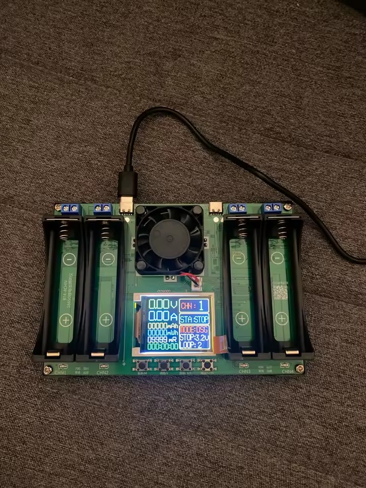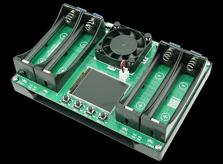 ✅ این دستگاه برای تست همزمان ۴ سلول باتری 18650 طراحی شده و میتونه ظرفیت واقعی (mAh)، مقاومت داخلی (mΩ)، و عملکرد شارژ/دشارژ هر سلول رو بهصورت مستقل اندازهگیری کنه.