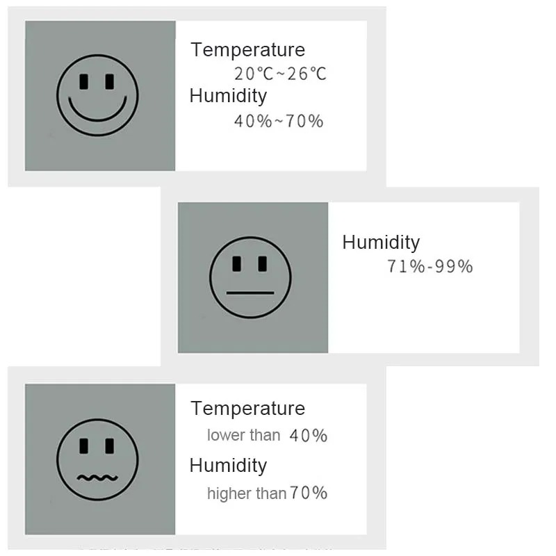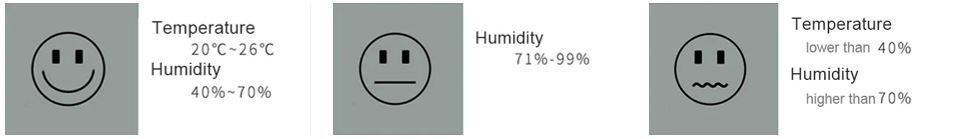 1.When the humidity is 40%-70%RH, it will show a smiling face, and others will show a crying face.