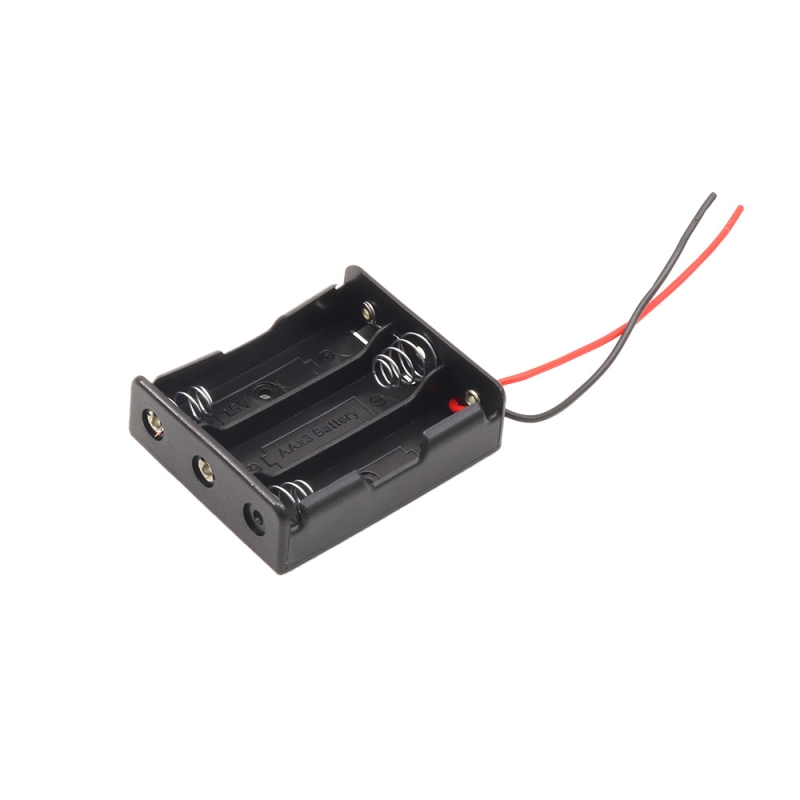 جا باتری قلمی سه تایی ابزاری است جهت نگه داری تعدادی باتری قلمی در کنار هم و اتصال آن ها به صورت سری برای تولید ولتاژ بیشتر استفاده می گردد با این محصول می توان 3 عدد باتری قلمی AA را جهت اتصال به مدار وصل کرد. جنس محصول از مواد پلی اتیلن مرغوب و به رنگ مشکی می باشد. از جا باتری در انواع گجت ها می توانید استفاده کنید و با توجه به ولتاژ مورد نیاز تعداد باتری ها متفاوت است.
