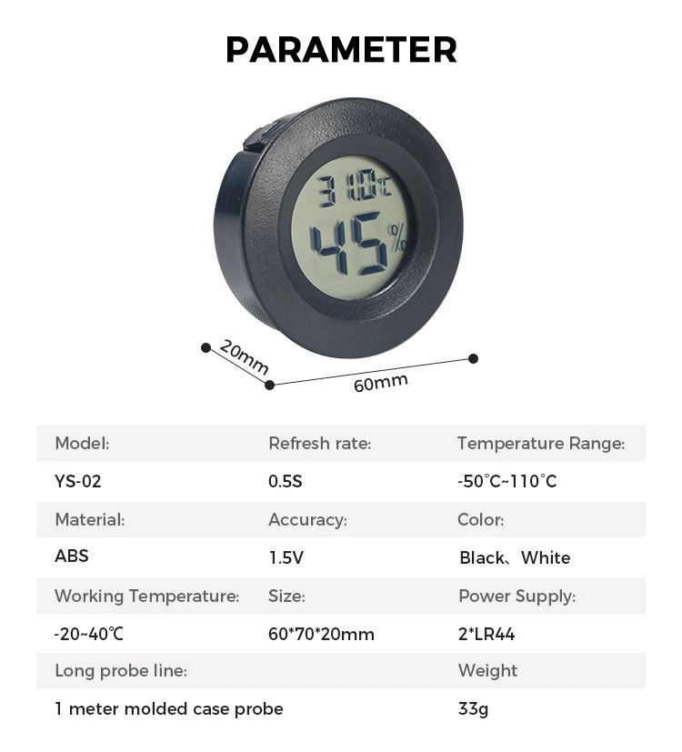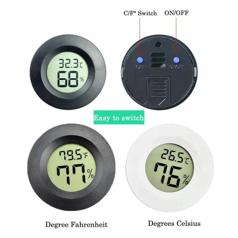 Round Type Mini LCD Thermometer Hygrometer Gauge Instrument