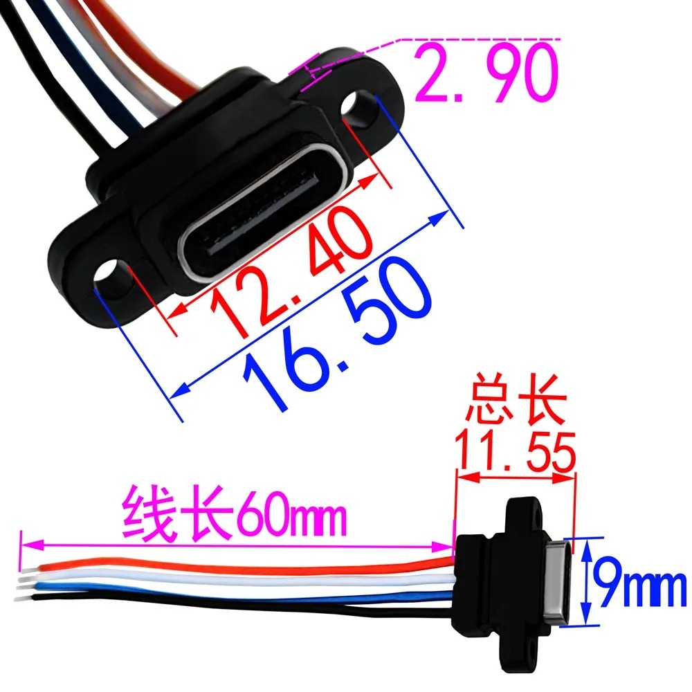 - ★This Type-C pigtail bare wire is Type-C female head, and one end is 4-pin 4-wire bare wire, providing a safe and simple DIY solution for type-C connector with cable.