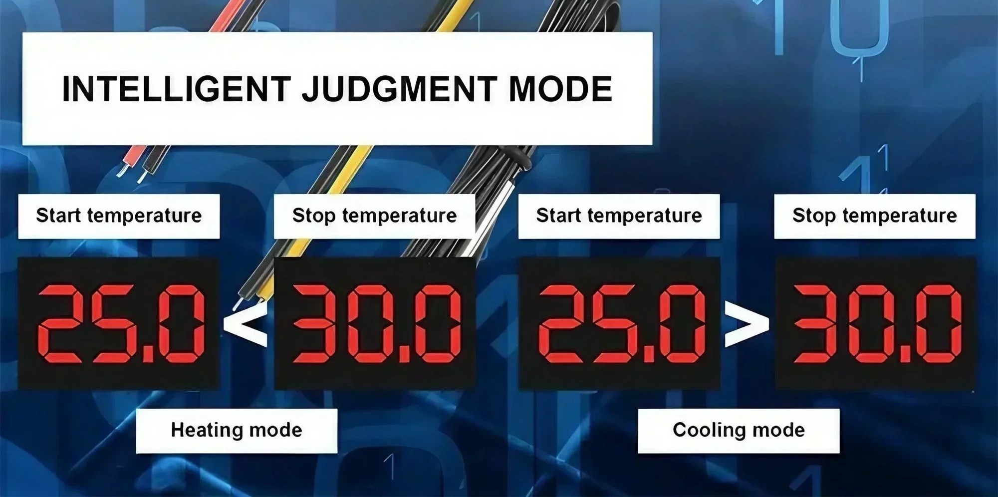 - زمانی که دمای محیط کمتر از دمای شروع (مثلاً ۲۵.۰ درجه سانتیگراد) باشد، دستگاه شروع به کار میکند تا دما را افزایش دهد.